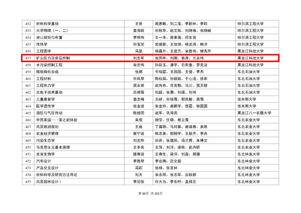 黑龙江科技大学矿业工程学院刘志军教授负责的《矿山压力及岩层控制》课程拟认定为第三批国家级线上线下混合式一流课程。